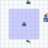 Pour changer de position, le personnage a le choix parmi les 8 cases potentiellement libres autour de lui.