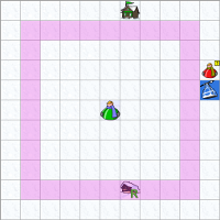 Si ces huit cases sont occupées, l'arrivée s'effectuera sur la couronne de 16 cases qui entoure la couronne de 8.